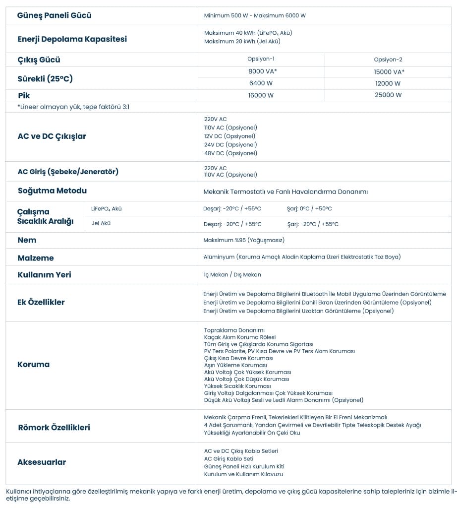 - Taşınabilir, Modüler, Bağımsız ve Bakım Gerektirmeyen Tasarım